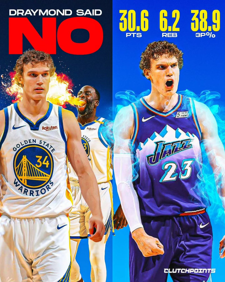 "Youusuallydon’twinthosethingsagainstDannyAinge."That’sDraymondGreen,tellingtheWarriors’frontofficetheyshouldn’tpullthetriggeronLauriMarkkanenbackintheoffseason.He’safanoftheguy,buttheprice?Toosteep.Youngplayers,draftpicks,thefutureontheline.AccordingtoAnthonySlater,Draymondhitthebrakesbeforethedealevengotclose:"Ithinkifyouwanttodosomethingsohuge,youbetterbecertainthatthisisthemove.Youusuallydon'twinthosethingsagainstDannyAinge.Ilookathistory."Fastforwardafewmonths,andMarkkanenisoutinUtahdropping30+pointsanightonalmost40%fromthree,makingitlookeasy.It’soneofthebiggest“whatif”momentsthisseason.DraymondprotectedtheWarriors’core,butnowfanscan’thelpbutglanceattheboxscoresandthink,“Man…thatcould’vebeenus.”